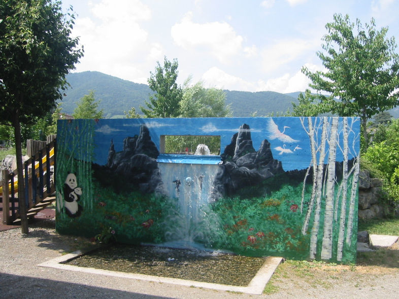 L’area è pensata per i più piccoli. I dislivelli, i giochi d’acqua e di ‘impasto’, i percorsi, il villaggio in riva allo specchio d’acqua, il saliceto, il canneto, i grandi alberi, il tunnel, i massi …….